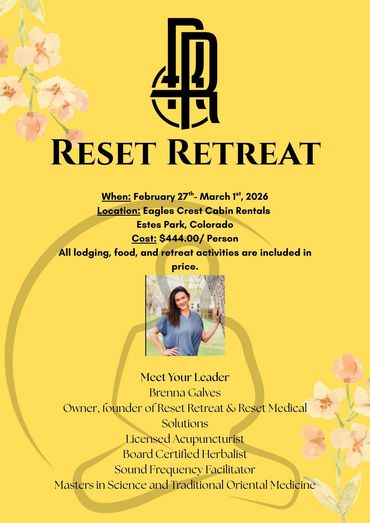 Each day we have the opportunity to Reset. Each moment we have the choice to re-center, relax, and rejuvenate with each breath. We often don't do that for majority of our waking and resting moments. Reset Retreat is your opportunity to retreat from your battle, and re-integrate your life with healing principles offered from healthcare leaders with an integrative approach.